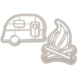 Camco's Life is Better at the Campsite Cookie Cutters are perfect for making decorative cookies. The pack features (2) unique camp themed shapes that are great for RV enthusiasts. The RV-shaped cookie cutter measures 4-Inch X 2-3/4 Inch and the campfire cookie cutter measures 3 Inch X 3-3/4 Inch. They are made from food safe plastic.